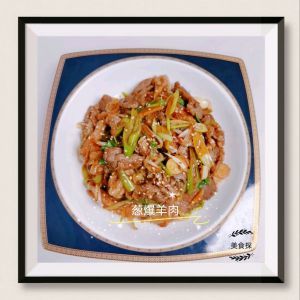 倒入切好的大葱丝,这是火不能太大,小火翻炒,洋葱裹着肉汁变软(这家羊肉没有血水,所以炒出来没有太多汤,不需要淀粉勾芡)