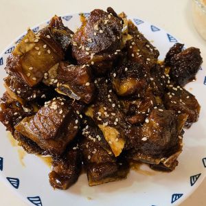 排骨倒入锅中翻炒,均匀裹上糖色,倒入适当的生抽,香醋以及排骨汤,大火煮至沸腾,小火慢炖收汁