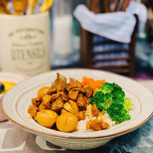 五花肉切小丁、葱姜断、鹌鹑蛋煮熟剥皮