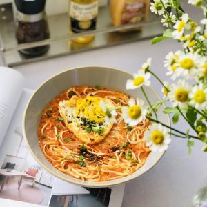 用筷子搅拌均匀,让每一根面条浸泡在汤汁里;