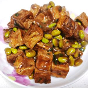 因为豆腐已经熟了,所以这里需要加水把毛豆也煮熟
