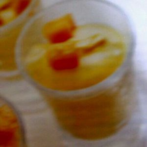 准备好模具,将剩下的四分之一果丁舀入模具,倒入放凉的果酱汁,冷藏2小时,冰爽的芒果布丁就做好了!在炎炎夏日来上这样凉凉一口还是很爽的!