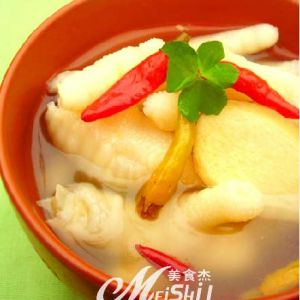 将煮好的凤爪倒入冷却后的泡菜水中,浸泡30分钟。