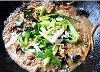 加入小青菜和蒜苗段和盐。