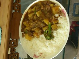 将土豆煨至可以较轻松用铲子断开后即可出锅,在盘子中盛上米饭,将咖喱盖上即可!
