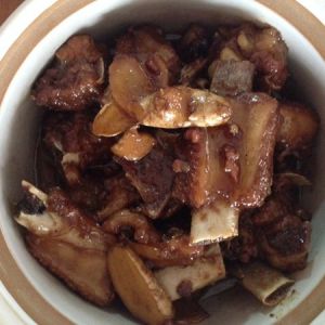 加开水没过排骨,大火加热,撇去浮沫,继续烧15分钟,转中小火继续烧半小时