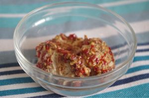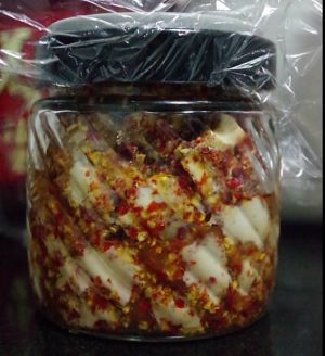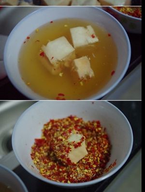 一个星期后豆腐发霉张膜,先在白酒里过一遍,再在辣椒粉椒盐裹一遍