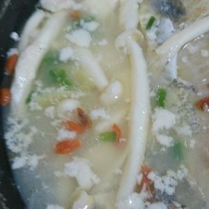 再炖一会儿之后加入枸杞和适量料酒,等汤汁变白变浓之后调入适量盐,白胡椒粉和葱花就可以开始享受美味了