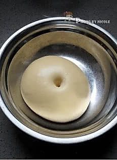 基础发酵结束,将面团取出排气后,滚圆,松弛15分钟;