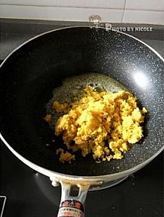 拌匀后用手搓成小粒,即为香酥粒待用;