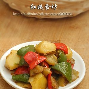 把地三鲜倒进去翻炒。