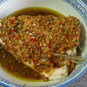 水开后鱼头蒸15-20分钟,根据各家灶的火力而定,再淋上蒸鱼豉油就可以出锅了,