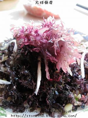 把泡好的海石花清洗干净,加盐,醋,糖,鸡精拌匀即可,我还加了一些蒜末和白菜丝。
