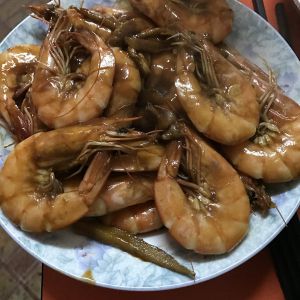 炒至变红,加入调料汁,加入两勺盐,加入清水一到两碗(按虾的多少)淹没过虾,盖上盖子开始焖