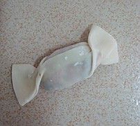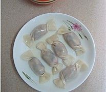 将拌好的肉糜捏成相同的大小。放入云吞皮中间,然后上下相叠包起。两边象糖果纸那样按不同方向拧几下,拧成糖果状。