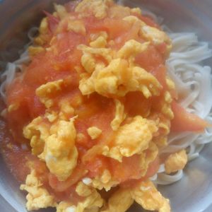 等西红柿软了之后加入鸡蛋翻炒一下,加了一点水,煮一下,落盐鸡精少许,最后我加了几滴醋