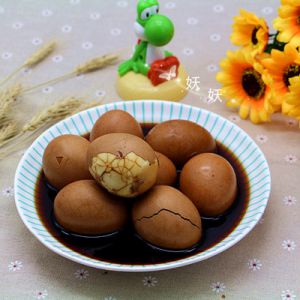 将煮好的茶叶蛋浸泡至少两个小时,能过夜最好,入味更深。打开,有漂亮的冰裂纹。