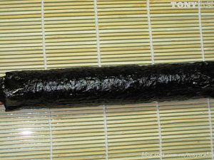 卷好后的样子。然后用一把锋利的刀沾点水切块就好了。