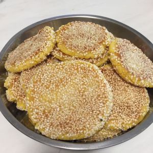 不粘锅放点油,把饼放下去煎,煎至两面金黄即可。(全程小火慢煎)