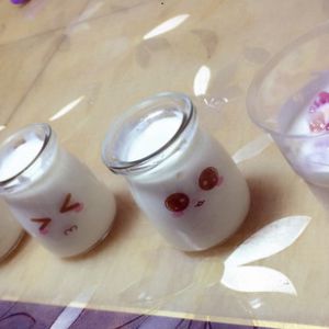 准备食材,两瓶牛奶,(最好是纯牛奶,我家里剩特仑苏将就用吧)半包乳酸菌,我那个五颜六色是手工芋圆,(看个人口味!最好是放果肉)
