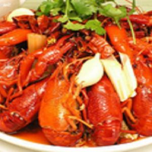 干辣椒约变色时,放入小龙虾大火爆炒。