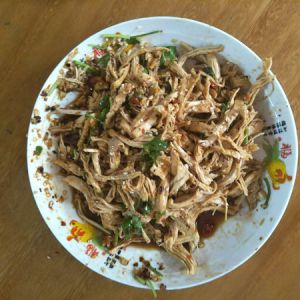 将鸡胸肉放入锅里在将葱姜放入锅里煮20分钟,盛出。