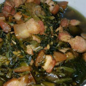 这是淮阳菜系里很有名的雪里红烧肉。雪里红就是雪菜,如果是雪菜干,那当然更好!