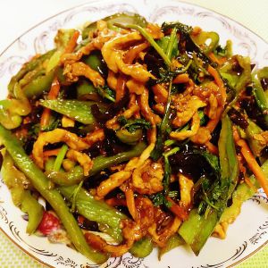 里脊切丝,打入一个鸡蛋,一勺淀粉