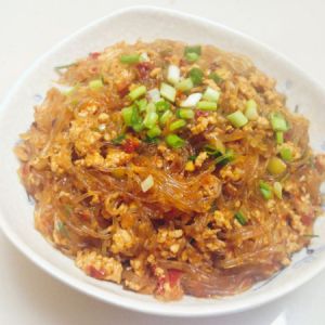 将龙口粉丝冷水冲净备用(勿长时间浸泡)。