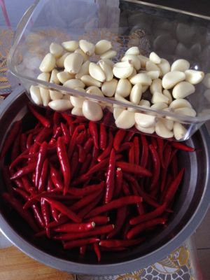 把大蒜和辣椒处理好,就跟图上这样就可以