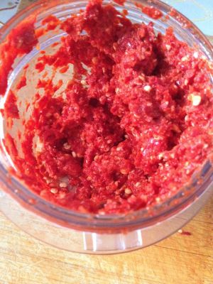 辣椒放料理机里打成泥,打的过程不要加水哦
