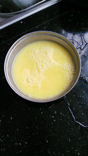 找一个薄点的碗,根据个人口味放入盐、自来水、鸡蛋和食用油,打均匀。