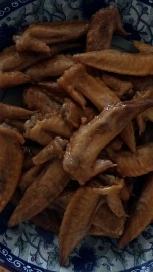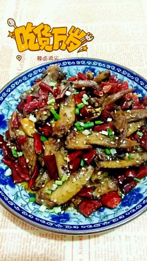 盛在盘子里,撒点葱花。我们的辣卤鸡尖就做好了。