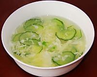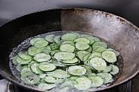清水入锅烧开、有条件可以用高汤代替清水……口感会更好、放入黄瓜、煮开