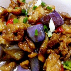 炸过茄子的油全部倒出,将茄子放入锅中,茄子本身很多油,不用放油了,放入一勺豆瓣,豆瓣很咸,不要放盐了,其他调料都不需要。