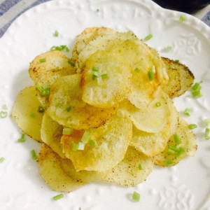 待烤箱预热好放入土豆烤10至13分钟 翻面再烤8到10分钟(每个烤箱都有自己的脾气,如果新手操作可看土豆的变化判定是否烤好了)土豆边缘翘起,表明金黄即为考好