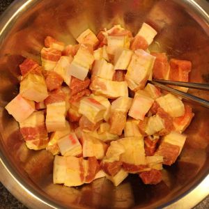 倒入粉蒸肉腌肉料包 搅拌均匀