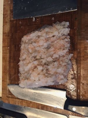 将三分之二虾仁如图剁碎成泥状做馅