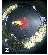 热锅中倒入少许植物油,油温5成热时,下入姜丝、蒜末炒香。