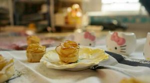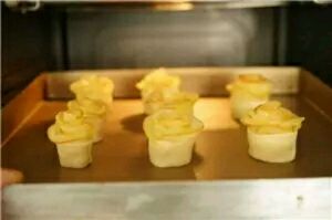烤箱提前预热,180度。摆上花儿,中层约20分钟后,转移到上层烤一两分钟。烤好后的花朵就可以食用咯!
