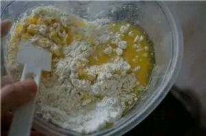 把低筋面粉筛入融化的黄油糖,在取25克煮苹果的水,和成不沾手的面团