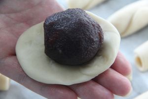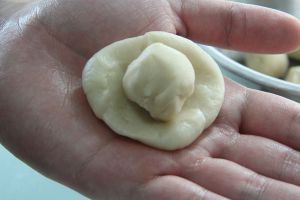 豆沙分成25克一个,包住一颗蛋黄