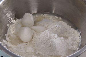 油酥材料混合在一起,捏成团