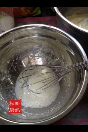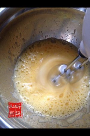 随着时间的推移,看见蛋液慢慢变成泡沫状态。蛋液颜色也开始逐步变浅。