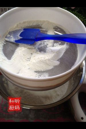蛋糕粉筛入蛋液里。