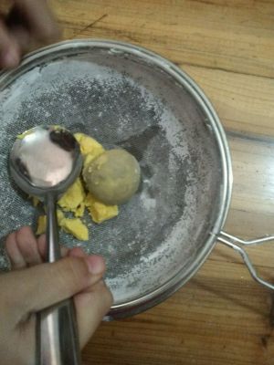 将熟蛋黄压碎,过筛。