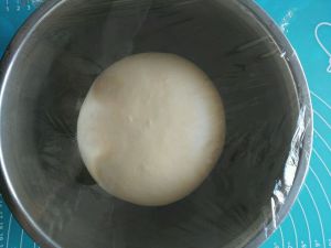 盆底薄薄抹一层油,将面团收圆放进去,盖上保鲜膜。放在温暖处发酵。