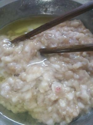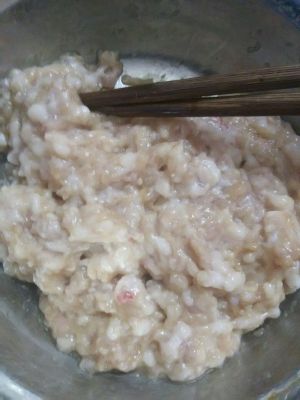 把猪肉剁细,剁肉酱,加蠔油、生粉、盐、油拌均匀。