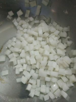 白萝卜切丁,用盐腌一下,腌到不再出水
