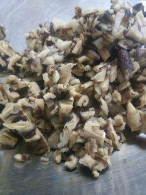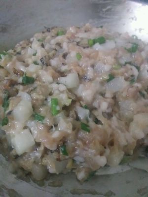把煸香的材料放凉,和猪肉馅和葱花和在一起